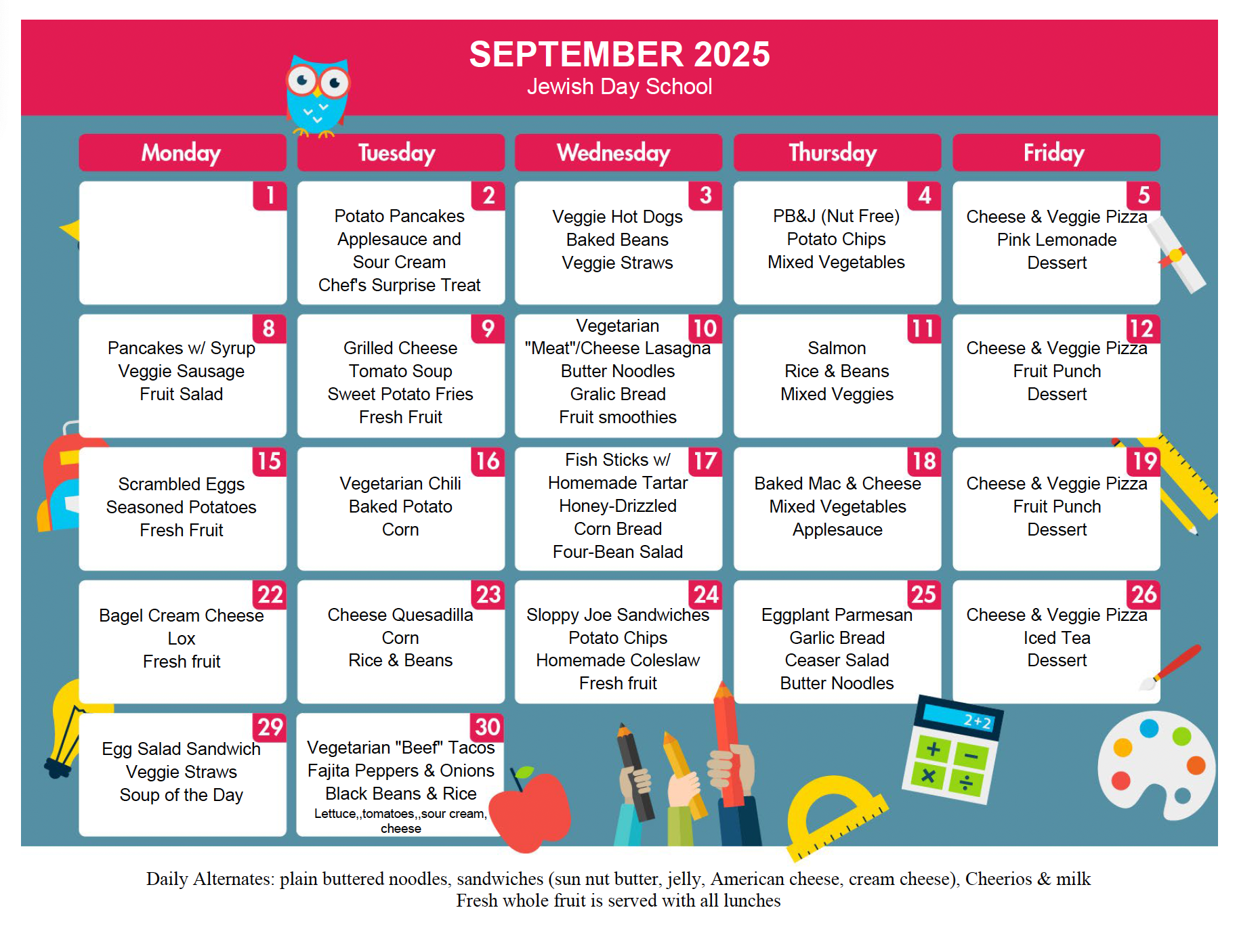 JDS EATS We are proud to offer a 5-day Kosher hot lunch program prepared by our chef extraordinnaire, Mr. Hector.